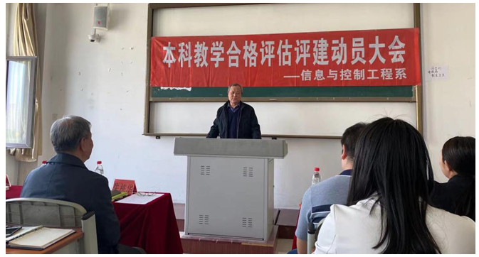4月21日,信息与控制工程系在第一教学楼411室召开本科教学合格评估评建工作动员大会。校党委书记杨化仁出席会议并讲话;全系教职员工参加会议。杨书记对信息系近年工作取得的成绩给予充分肯定,并结合学校发展形势与评建工作实施等提出了具体要求。他强调,本科教学合格评估评建工作是学校未来两至三年的重点工作,全系教工务必高度重视、全员参与,落实责任、有序推进,统筹协调、通力协作,为学校发展建设贡献力量。会上,系主任朱栋华就开展本科教学合格评估评建工作进行了深入动员;系副主任张连浩主持会议并宣读了《信息与控制工程系评估评建工作领导小组成员名单》;电气工程及其自动化、自动化、计算机科学与技术、通信工程、智能科学与技术五个专业的教研室主任及骨干教师代表作了表态发言,阐明了努力工作的积极性和为迎接评估而踏实肯干的决心。