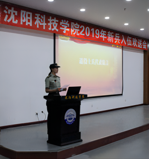 校长助理、学生处处长高洪震向光荣入伍的大学生新兵们表示热烈的祝贺,并指出依法服兵役是公民的神圣义务,从在校大学生中征兵,是国家优化兵源结构,提高兵源素质和战斗力,推进人才强军和科技强军战略的重大举措。同时,在新兵们即将告别母校和亲人,奔赴军营之际,他还对入伍新兵提出三点希望:一要勤奋学习,提高素质,掌握过硬本领,尽快实现由一个普通青年到一名合格军人、优秀军人的转变;二要遵守军纪,奋发图强打牢吃苦耐劳的思想基础,以争先进、创一流的精神状态积极投身于丰富多彩的军营生活中;三要练好本领,报效祖国,从本职工作做起努力实现自身价值,展示壮丽人生;四要心系沈科,勿忘母校,多支持母校的发展,把“博学笃行·种德修身”校训带到部队去,让沈科精神在军营闪光!
