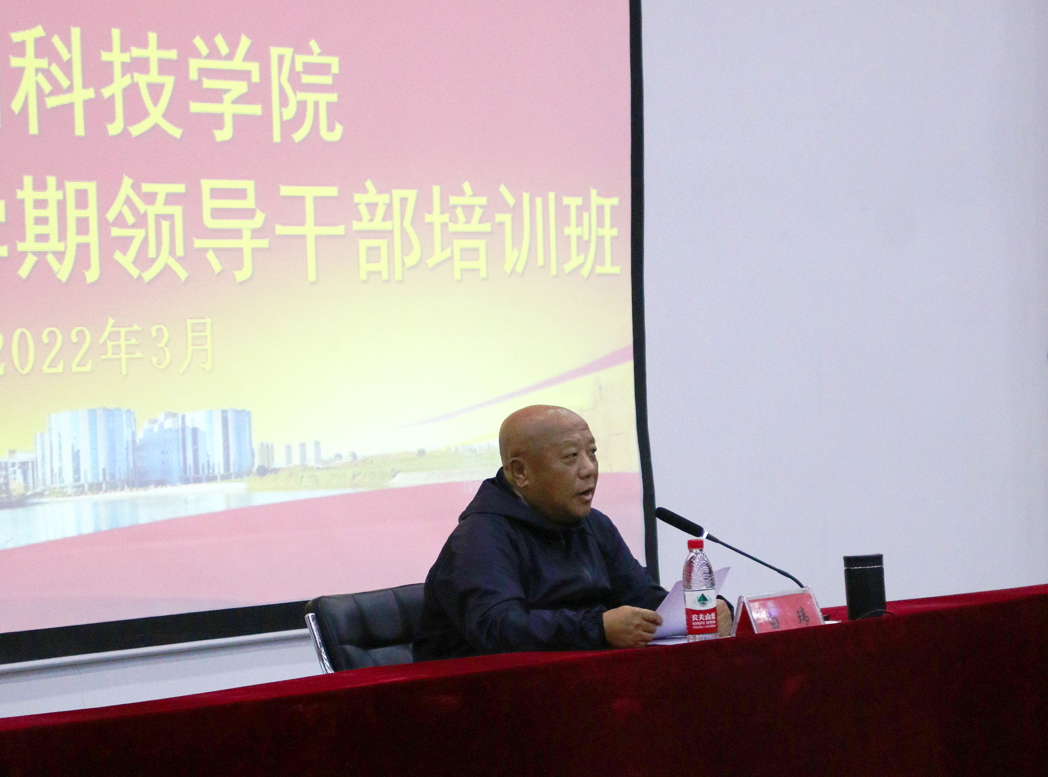 2月27日,学校2022年以“强素质、干实事、促评建”为主题的春季学期领导干部培训班开班仪式在图书馆六楼报告厅举行。党委书记白玮、校长陈保东等学校领导班子成员,全体科级以上干部参加了开班仪式。开班仪式由党委组织部部长肖士中主持。