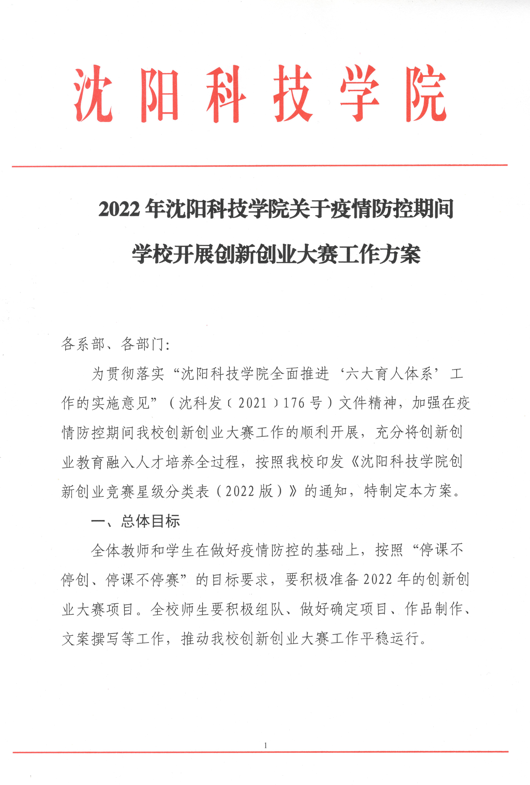 为贯彻落实《九州在线注册全面推进‘六大育人体系’工作的实施意见》(沈科发﹝2021﹞176号)文件精神,加强在疫情防控期间我校创新创业大赛工作的顺利开展,大学生创新创业教育中心起草制定了“关于疫情防控期间开展创新创业大赛的工作方案”,从总体目标、主要工作和措施、工作要求三方面着手,为疫情期间开展创新创业大赛指明方向。