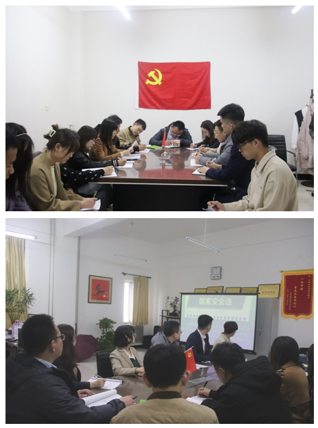 4月14日,管理党总支第一支部组织开展了以“践行总体国家安全观,统筹发展和安全,统筹传统安全和非传统安全,营造庆祝建党100周年良好氛围”为主题的理论学习。会上,广大党员教师及部分学生党员代表系统学习了习近平总书记关于总体国家安全观重要论述和相关文件精神,通过观看视频的形式了解了国家安全方面的相关知识,有效引导了广大师生认清国家安全形势,切实增强全民国家安全意识,推动维护国家安全从我做起、从身边做起。(根据管理党总支供稿修改 通讯员:蒋明儒)