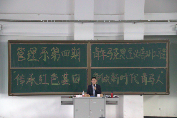 4月21日下午,管理党总支在第二教学楼424教室开展了以“学党史、颂党恩、跟党走——传承红色基因,争做新时代有为青年”为主题的党日活动。党委委员、党群工作部部长肖士中应邀出席,为广大学子讲授了专题党课。他以各个历史时期党的光辉历程、党史发展脉络及学习意义等内容为切入点,深刻阐明了“学史明理、学史增信、学史崇德、学史力行”深刻内涵,并希望广大青年学子要以史为鉴,立足当下,展望未来,始终坚持党的领导,争做新时代有为青年。(根据管理党总支供稿修改 通讯员:蒋明儒)