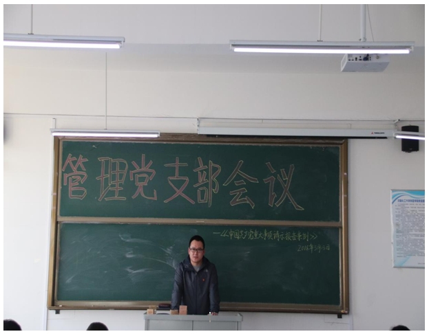 管理党支部书记赵恩主持召开学习会议,并指出重视重大事项请示报告是我们党的优良传统。此次《条例》的出台,是新形势下管党治党的客观要求,要结合教育教学实际,将理论学习成果转化为推动教育教学发展实践举措,探索推进全系在新时代健康稳定发展。在会议中,支部师生党员纷纷表示要认真学习、深刻领会,坚定政治信仰,自觉在思想上、行动上与党中央保持高度一致,将《条例》贯彻到工作学习的方方面面,确保落实不打折扣。