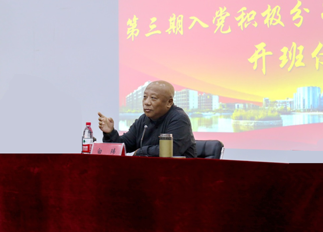 10月13日,学校在图书馆报告厅举行第三期入党积极分子高级党校培训班开班仪式。校党委书记白玮出席仪式并作动员讲话,党委书记助理李鲁宁主持本次开班式。党委委员、党委组织部部长肖士中和各党总支、直属党支部书记、学生党支部书记和全校168名党课培训学员参加了开班仪式。