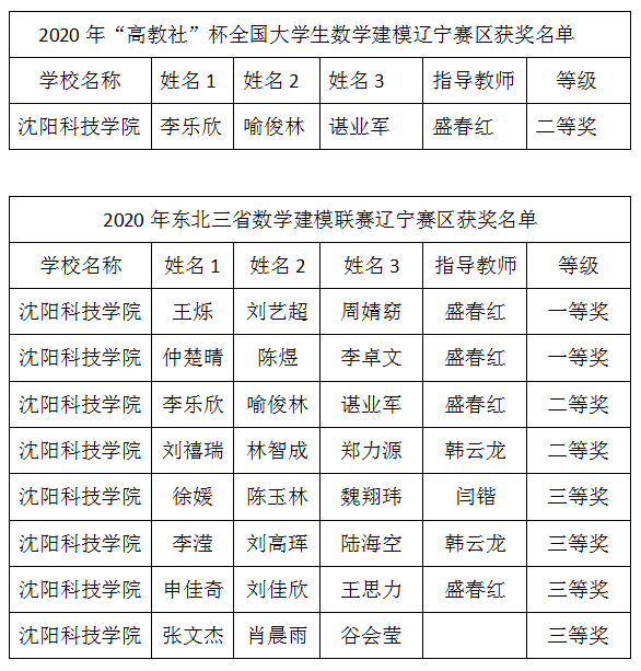 近日,由中国工业与应用数学学会主办的2020年“高教社”杯全国大学生数学建模和由东北三省数学建模联赛组委会主办的2020年东北三省数学建模联赛双双落下帷幕,我校在以上竞赛中共斩获9项省级佳绩,分别是一等奖2项,二等奖3项,三等奖4项。
