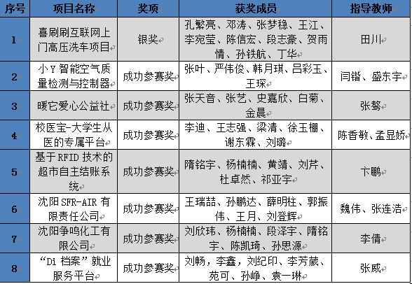 近日,由辽宁省教育厅、财政厅共同主办的第三届辽宁省“互联网+”大学生创新创业大赛暨第三届全国“互联网+”大学生创新创业大赛省级选拔赛结果公布。在本次竞赛中,我校报送的8个项目经过项目展、小组赛和路演赛的激烈角逐,最终收获银奖1项,成功参赛奖7项。