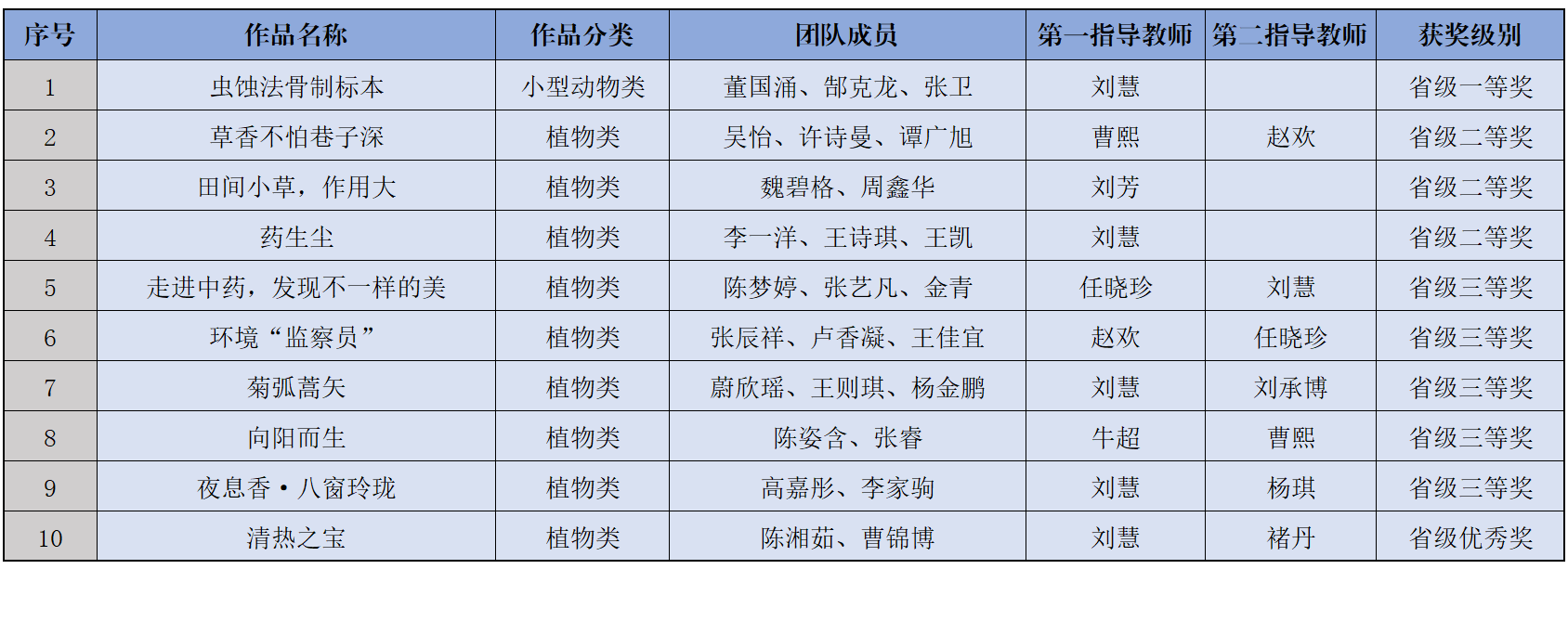 近日,2021年辽宁省大学生动植物标本大赛结果公布,经过评审组严格评选,我校参赛作品共获得10项省级奖项,分别是一等奖1项、二等奖3项、三等奖5项、优秀奖1项。