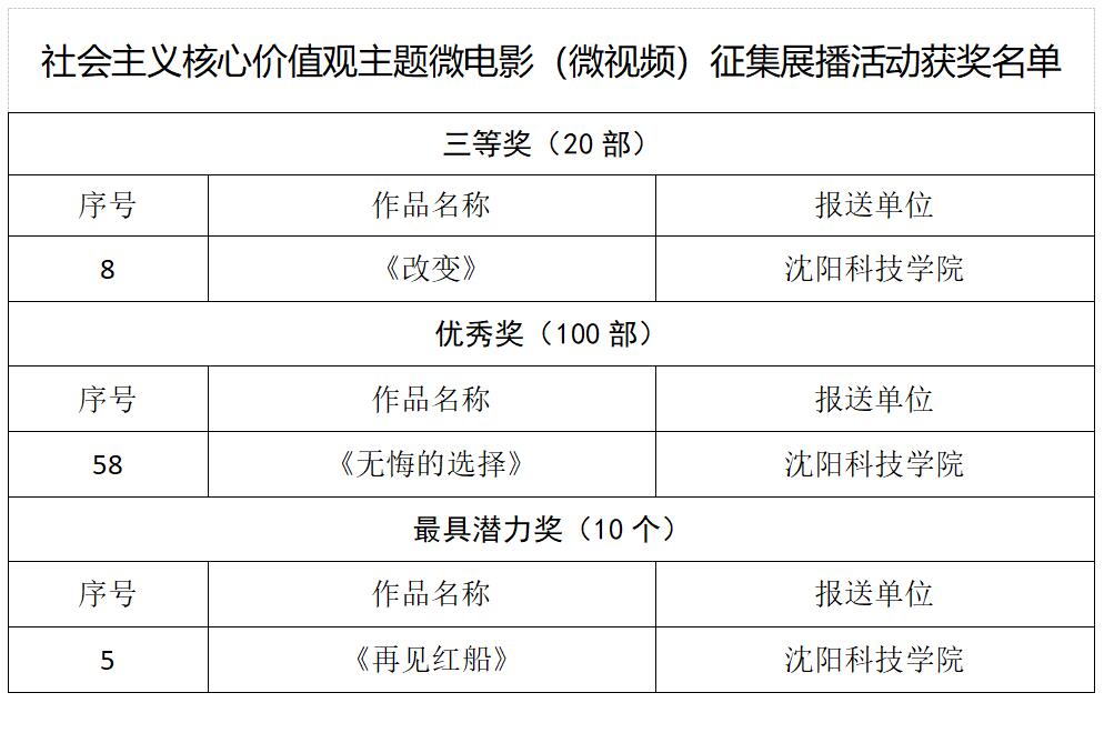 日前,由省委宣传部主办、辽宁报刊传媒集团(辽宁日报社)、辽宁广播电视集团(辽宁广播电视台)联合承办的“微影暖意·北国故事”社会主义核心价值观主题微电影(微视频)征集展播活动落下帷幕。我校共有三项推荐作品在本次活动评选中荣获佳绩。