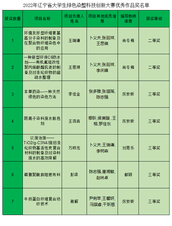 我校在2022年辽宁省大学生绿色染整科技创新竞赛中喜获佳绩