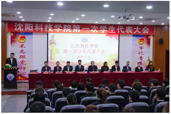 大会在庄严的国歌声中拉开帷幕。开幕式上,沈阳市学联驻会执行主席王子文代表上级学联向大会的胜利召开表示祝贺,对我校学生会工作给予了充分肯定,他表示,各级学生会干部要坚定理想信念,勇于担当作为,自觉把个人理想融入到党和人民的共同奋斗之中,要紧跟学联、学生会改革步伐,结合工作实际,不断完善自身建设,切实推进学生会改革向纵深发展;要坚持学生主体地位,拒绝“官本位”思想,切实把学生会建设成根植同学的共同家园、凝聚人心的温暖集体、运转高效的网络体系,团结带领广大同学,共同立下不忘初心跟党走,不负时代勇向前的庄严誓言。