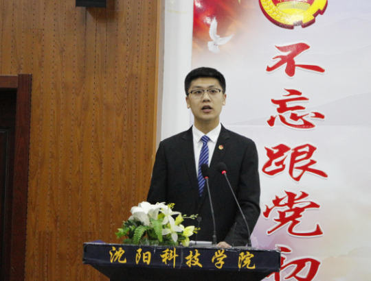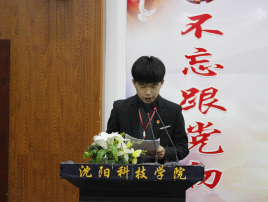 校学生会主席团成员贾志超在大会上作了题为《不忘跟党初心·牢记青春使命》的工作报告。