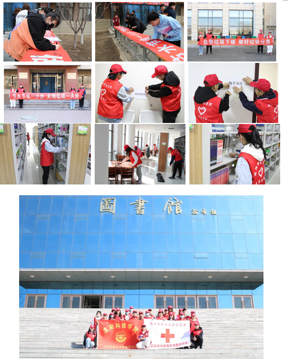 3月13日至3月25日,开展“志愿服务一小时,共创文明新校园”志愿服务活动,组织签字仪式,并对教学楼、学生宿舍、图书馆进行清洁和整理,宣传动员广大青年做好垃圾分类、节约资源。