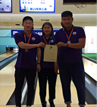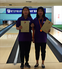 此次比赛共设有单人赛、双人赛、三人队际赛三个项目,在我校领导高度重视和支持下,由校团委老师领队、6名学生组成的代表队,经过顽强的拼搏,在高手云集的对手中脱颖而出,取得了团体第四名好成绩。其中我校学生社体1601丛琳获女子单人赛第二名;社体1402吕金洋、社体1601丛琳获女子双人赛第二名;社体1601方正获男子单人赛第五名;社体1501韩金嵩获男子单人赛第七名;社体1601高继超、社体1402薛诗宇获男子双人赛第五名;吕金洋、韩金嵩、薛诗宇获三人队际第四名,创造了我校保龄球社成立以来的最佳战绩。