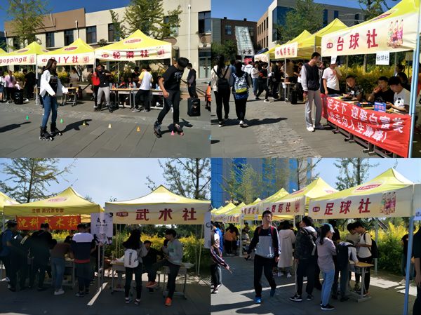 招新现场热闹非凡,分布于会场前段的舞台表演是本次社团招新的一大亮点,这其中既包括学生乐队的专场演出,也有全民健身的热浪涌动。重金属与流行音乐的交织,加上歌手的天籁之音,吸引了许多同学驻足。其中由民乐社的《蜕变》,给我们带来一场音乐的盛宴。舞台前挤满了观众,时间仿佛在此刻停下,大家在这里与音乐浪漫相约,一起陶醉在乐声中,陶醉在沈科秋色之中。