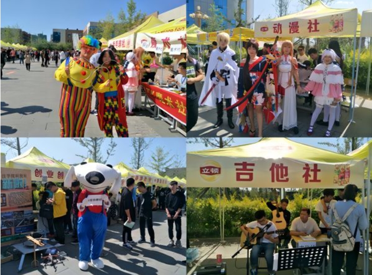 图书馆门前,社团巡演精彩不断。身着汉服的仙女穿着裙子款款而来,迎接远方的宾客。轮滑协会的同学穿着轮滑鞋向观众们招手,帅气地在如潮人流中漂移,最可爱的是穿着轮滑鞋的皮卡丘,熟练地游走人群中,引来观众阵阵欢呼。展示之余,缤纷多彩的游戏也受到了同学的追捧,像古风汉服社摊位投壶游戏,桌游社摊位的精彩桌游。同学们在游戏中不仅收获了乐趣,也开阔了视野,感受到了青春的魅力。