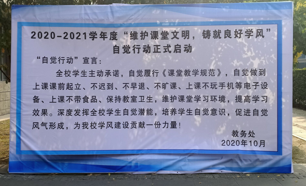 为了维持良好的教学秩序,充分发挥全校学生的自觉意识,加强学风建设,教务处于10月起组织开展2020-2021学年度“维护课堂文明,铸就良好学风”自觉行动。