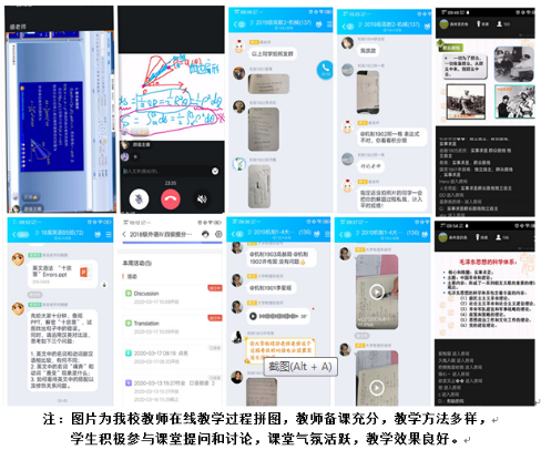 各教学单位积极响应,认真落实在线教学实施方案,根据专业特色与课程要求,任课教师各显神通,平台择优,模式创新。各教学单位职责明确,分工合作,确保平台对接无障碍,技术难题有人复。本着“课堂,教师是第一责任人”和“对每位学生负责”的原则,提出“以学生学习为中心,从课外要时间,向学生要精力”的理念,教师们结合在线教学特点,精心设计在线教学组织全过程,学生积极配合,我校在线教学工作平稳推进。同时,采取科学有效的管理措施,我校科研工作和创新创业工作全面启动,使得在线教学与常规教学科研工作协调组织、梯次分布、有序开展。
