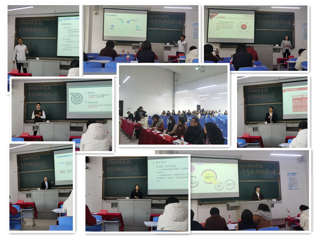 本次说课大赛历时两个月,从前期系(部)初赛选拔,广大青年教师踊跃报名;到中期举办“说课艺术与教学反思”专题讲座,帮助青年教师更好的掌握教学基本规范、夯实教学基本功;再到后期入选决赛的青年教师反复磨课、修改课件,直至比赛当日身着正装、从容自信的走上讲台……经系(部)选拔推荐,共有16位青年教师进入校级决赛。校级决赛于2021年12月9日至10日在校内举行,整个比赛过程中,全体参赛教师积极准备、沉着应战,充分展现了广大青年教师的风采与担当。