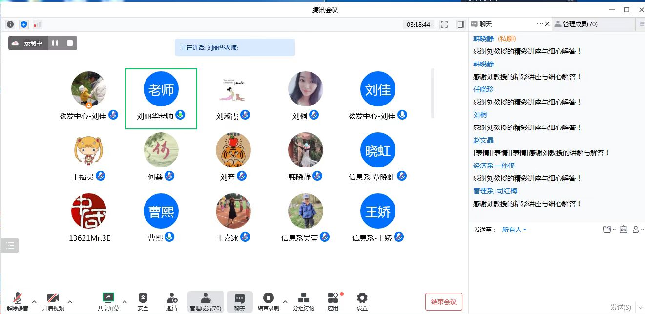 本次讲座刘丽华教授从“教学团队、课程目标、课程建设及其应用情况、课程特色与创新、课程建设规划和附件材料”六个方面对标省级一流本科课程申报相关工作内容为我校教师做精彩讲座。