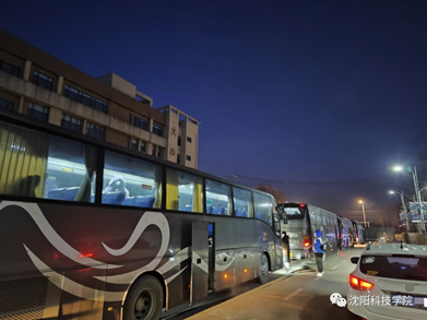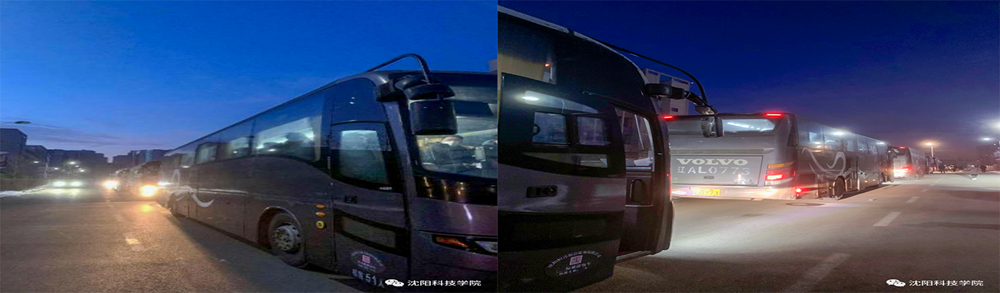 考研学子用完爱心早餐后,乘坐送考车点对点奔赴各考点,学生处全体同志及毕业年级辅导员到校送考,并为学生发放防疫物资、鼓劲加油。