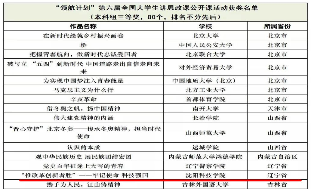 组织开展“大学生讲思政课公开课”活动,旨在深入学习宣传贯彻党的二十大精神,推进习近平新时代中国特色社会主义思想进教材、进课堂、进头脑,引导广大青年学生热爱思政课、学好思政课,主动参与思政课教学,形成良好思政课教学氛围,营造良好校园文化环境。此次成绩的取得,是对我校思政课教学改革成效的检视,也展示了沈科学子“青春心向党、强国我担当”的使命感和责任感。