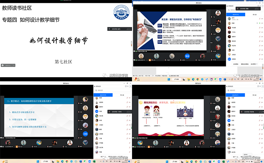 为提高学习《如何设计教学细节》的实践效果,本社区将书分成4部分由4位教师领读分享,通过线上线下结合的方式,各位教师结合教学实际分享了读书心得,并进行研讨交流。