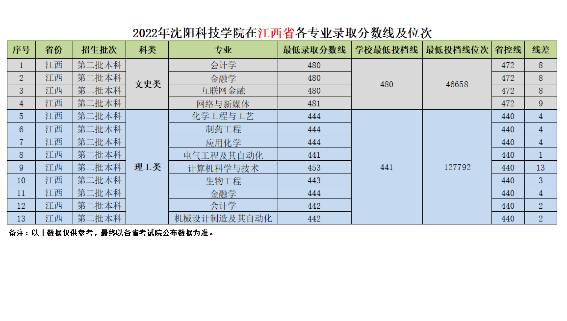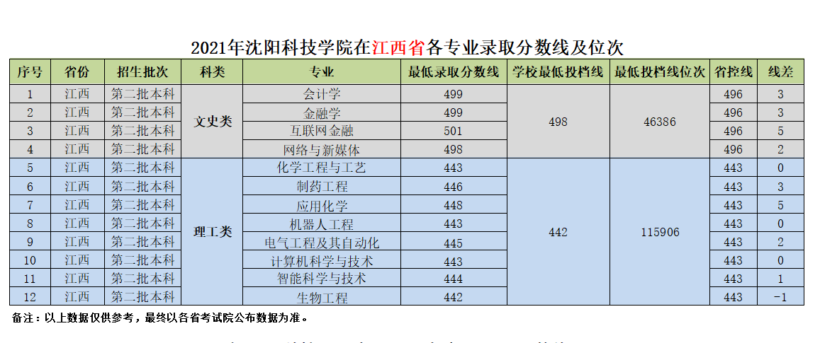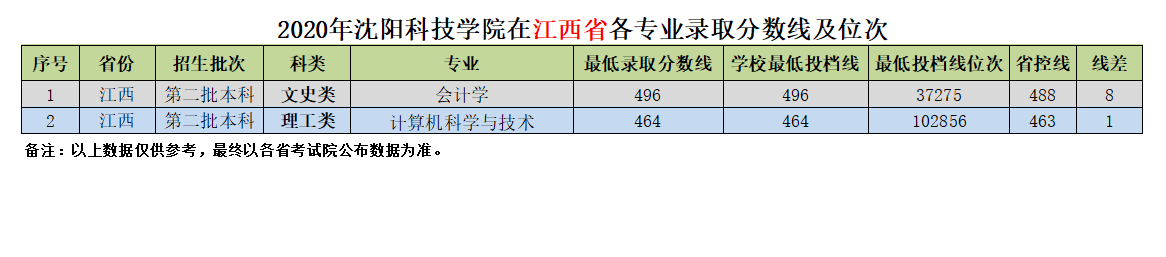我校在江西省近三年各专业录取分数线及位次