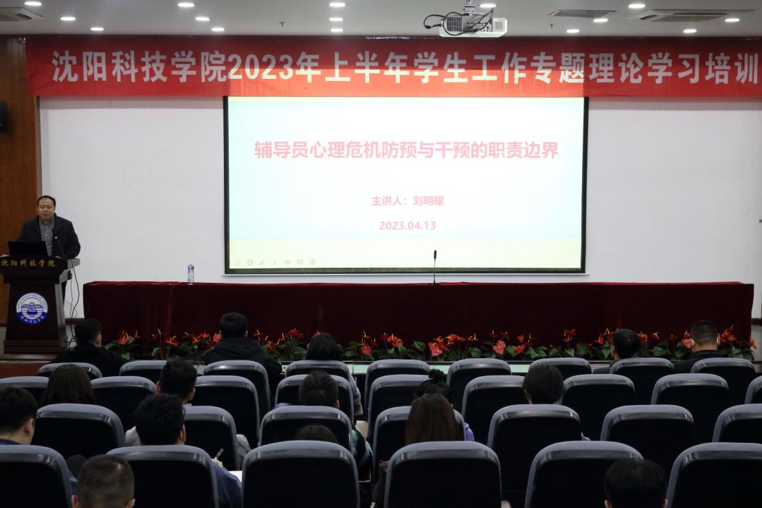 为推动我校学生工作队伍政治理论学习常态化,4月13日下午,学生处组织召开2023年上半年学生工作专题理论学习培训,邀请到辽宁生态工程职业学院副教授刘明耀作专题讲座,党委学生工作部部长、学生处处长何大伟主持会议,全体辅导员及学工教师参加了学习培训会。
