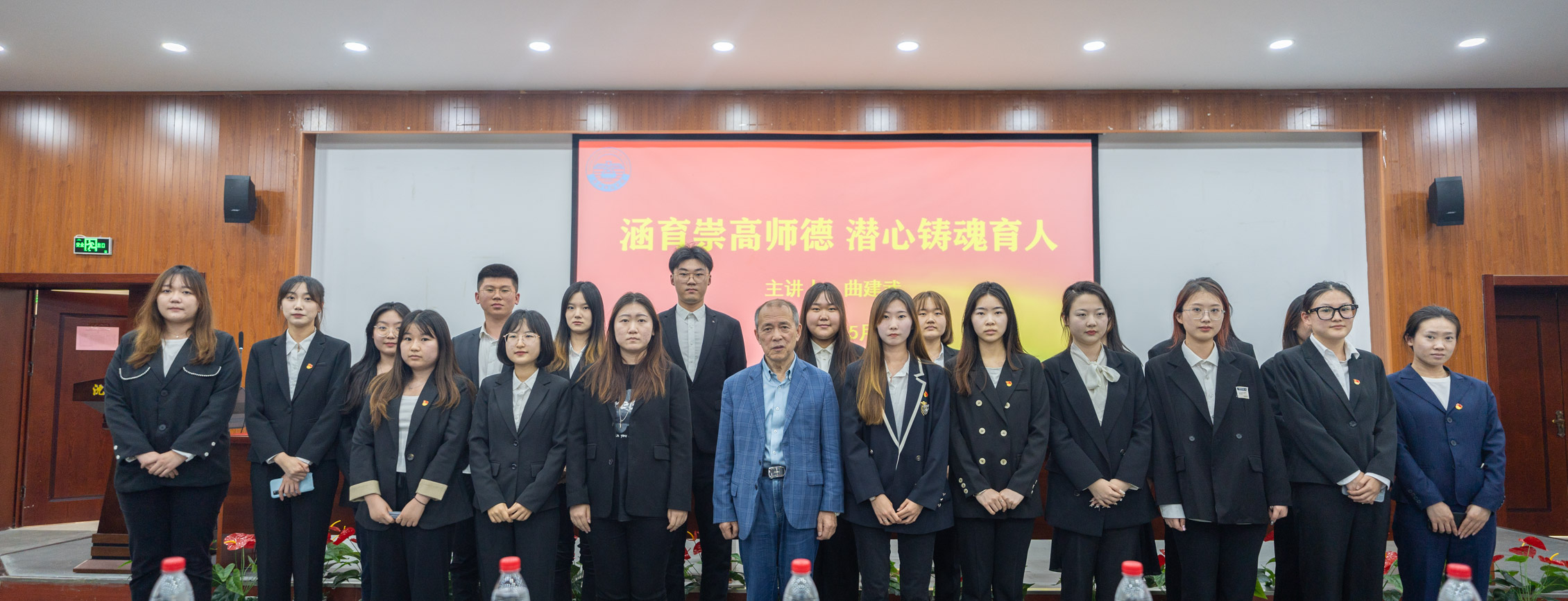 近两个小时的讲座,曲建武教授全程饱满热情地站立演讲,身体力行地表达着“和学生在一起”的坚守、对育人工作的执着、对教育事业的热爱。讲座主题鲜明,感染力强,赢得在场师生的强烈共鸣。讲座结束后,与会广大师生纷纷上前与曲教授合影留念。
