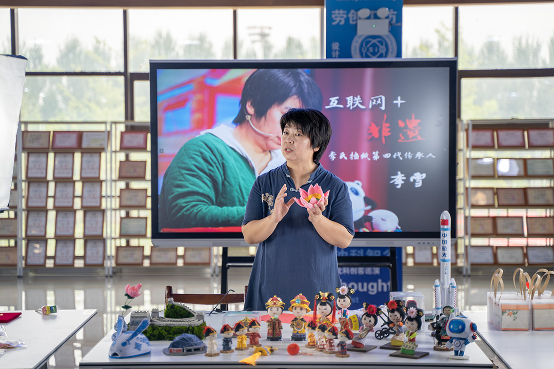 为丰富校园文化内涵,培育学生对民族精神和文化的认同,通过非遗传承、保护、发扬的过程打开学生参与创新创业项目的灵感,2023年6月29日,国家级手艺人、非遗传承人李雪老师做客我校创新创业孵化基地,开展以“互联网+非遗”为主题的非遗学习和掐纸文化体验活动。