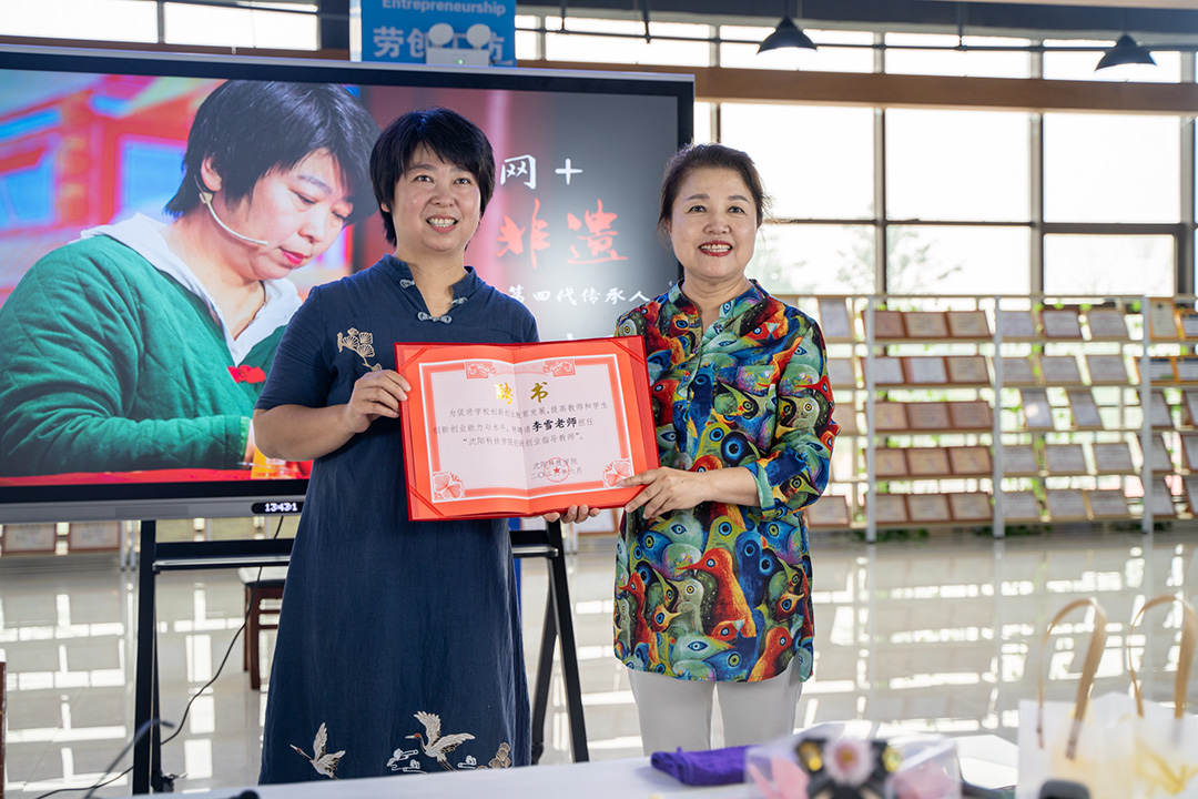 活动最后,孙玉红校长为李雪老师颁发了创新创业导师聘书,孙校长指出:“党的二十大报告中对‘增强中华文明传播力影响力’作出重要部署,提出坚守中华文化立场,提炼展示中华文明的精神标识和文化精髓,展现可信、可爱、可敬的中国形象的任务。学校将进一步把非遗文化引进校园,通过开展‘互联网+非遗’掐纸非遗文化体验活动,弘扬了中华优秀传统文化、坚定民族文化自信,激发学生对传统艺术的兴趣,体验掐纸的魅力,加深对非遗文化的认识和理解,提升学生的创新创业实践能力”。