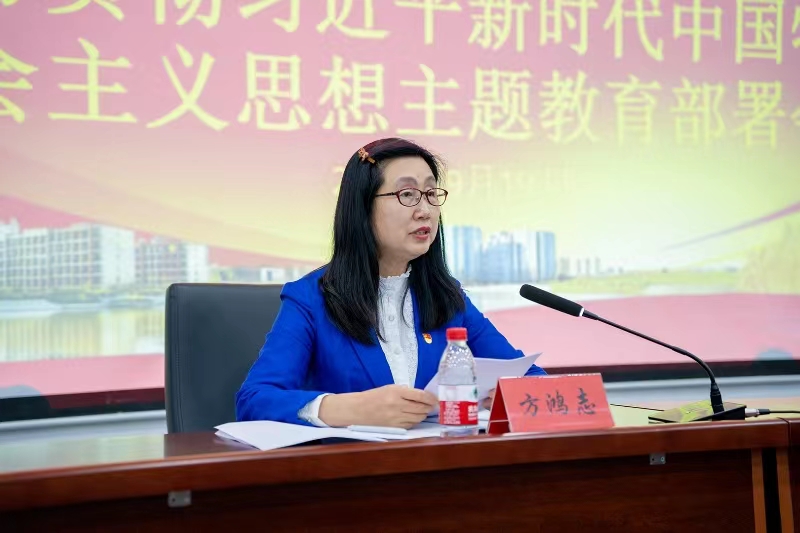 方鸿志代表省委教育工委第五巡回督导组,对巡回督导组工作职责作简要说明,就我校贯彻好党中央及省委、省委教育工委部署要求,落实好主题教育各项任务提出五方面指导意见。一是准确把握目标要求,切实把思想和行动统一到党中央部署及省委要求上来。二是紧密结合工作实际,切实增强开展主题教育的针对性实效性。三是认真解决实际问题,着力把主题教育成果体现到推动学校高质量发展、惠及全体师生上。四是全面深入检视问题,务求主题教育各项整改整治任务落实落地。五是压实责任强化引导,以严实作风确保主题教育取得扎实成效。