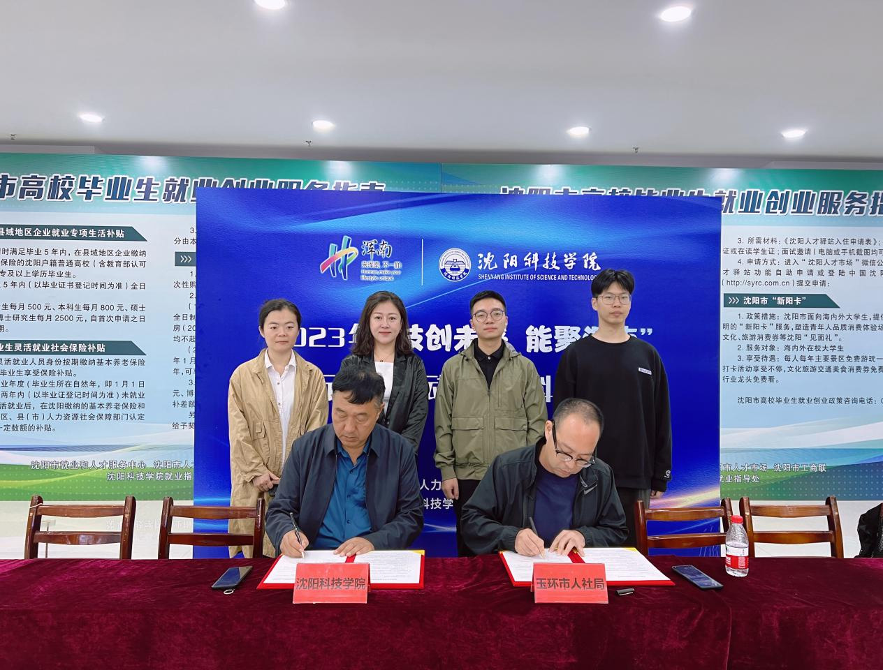 在招聘会现场,我校副校长王鸿鹏与浙江省台州市仙居县人力资源和社会保障局、玉环市人力资源和社会保障局签订了校地人才合作基地框架协议。