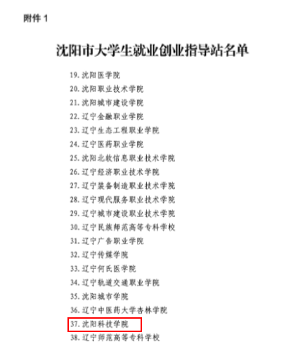 近日,沈阳市教育局及沈阳市人力资源和社会保障局联合公布了沈阳市大学生就业创业指导站名单及沈阳市第一批优秀大学生就业创业指导站名单。我校成功入批“沈阳市大学生就业创业指导站”并荣批“沈阳市第一批优秀大学生就业创业指导站”。此次全市共认定38所高校指导站为沈阳市大学生就业创业指导站,20所高校指导站为沈阳市第一批优秀大学生就业创业指导站。