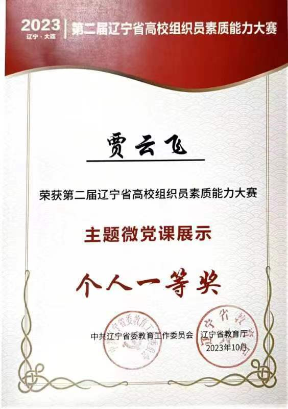 经过激烈角逐,我校冲进决赛,并荣获集体三等奖,是全省晋级决赛获得集体奖项的两所民办本科高校之一,较上届成绩取得巨大进步。贾云飞同志在主题微党课展示环节荣获个人一等奖。