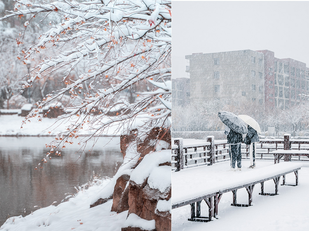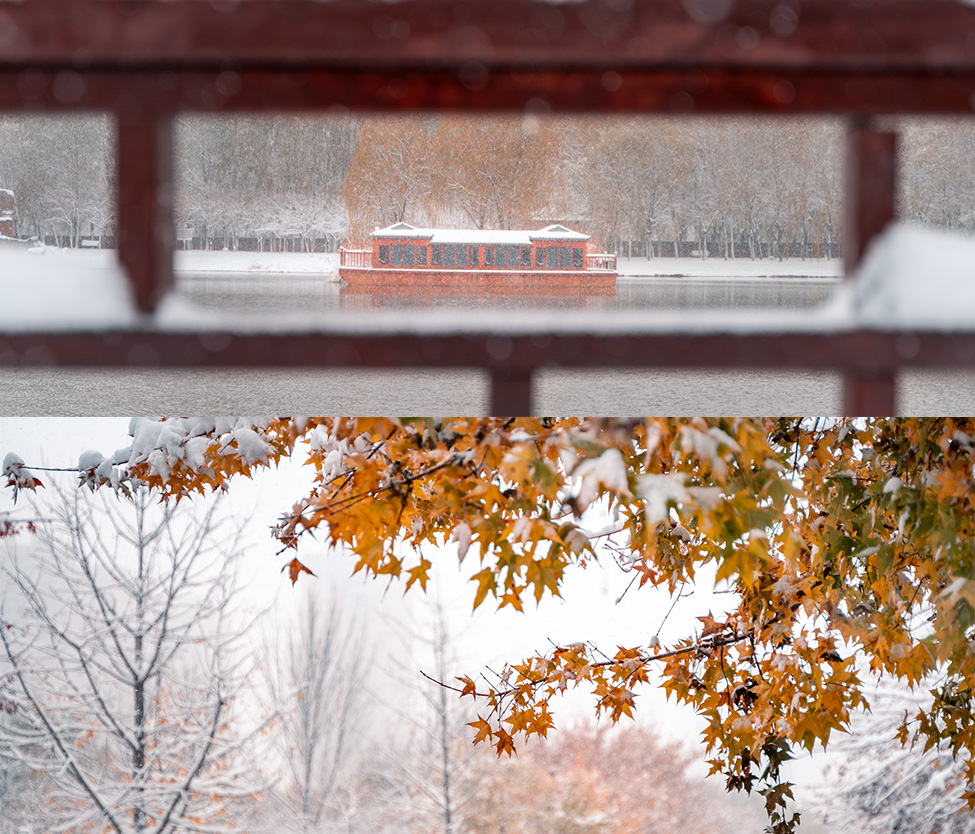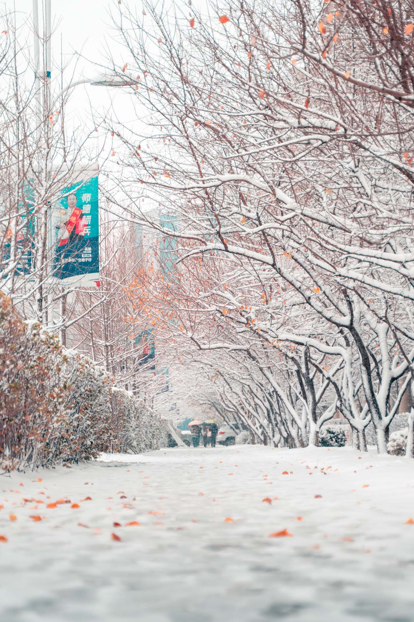 看!那飘飘的白雪 看它悠着荡着晃着,落在树梢、枝头 看它轻盈的跌入掌心 瞬的化作一片晶莹 那纷纷而下的,并非撒盐空中差可拟 而未若柳絮因风起 因风而起,随风而舞,顺风而落 恍然间,万物都渲染上了冬的色彩 风止,雪落交错的脚印 压弯的枝头轻抚肩头的落雪 一抬手,便接住了冬天 蹲下身,薅一把雪 也便抓住了冬天 看漫天苍白茫茫, 忽的理解万里雪飘的磅礴初雪 永远是独属于东北人的浪漫