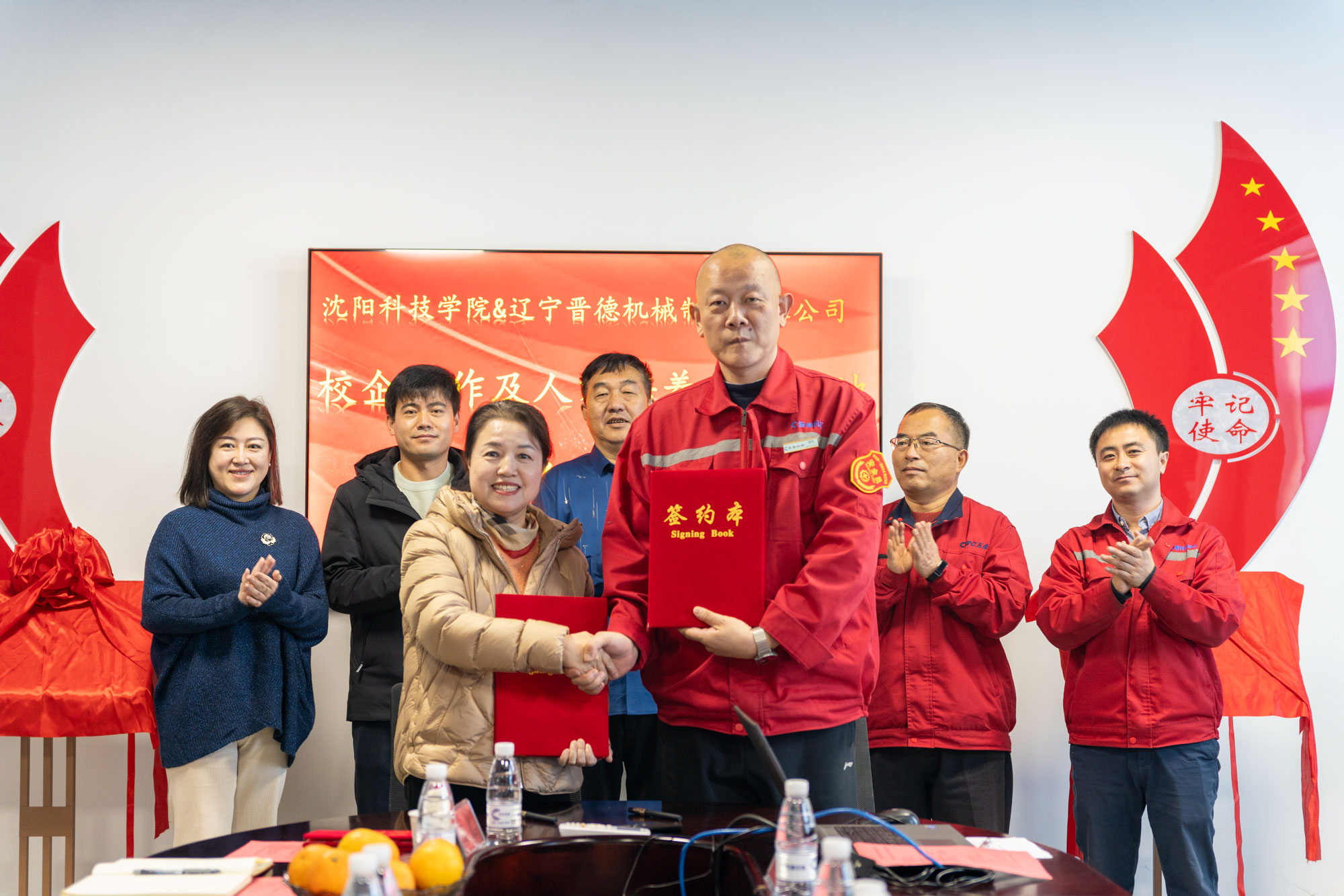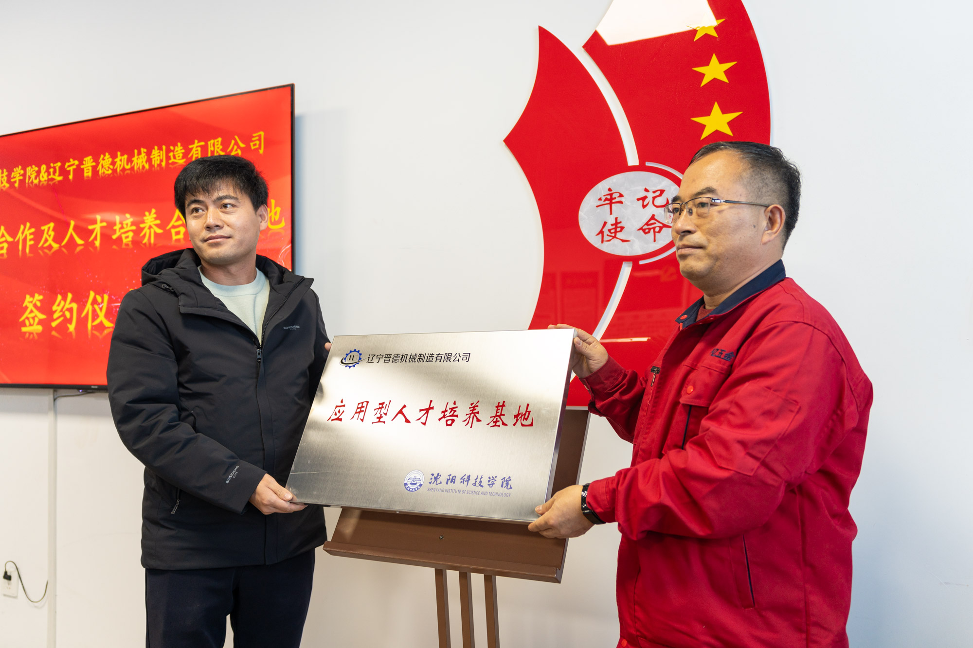 孙玉红校长和魏凯董事长代表双方正式签署了校企合作协议,王鸿鹏副校长和研发中心杨总为实践就业育人基地揭牌,机械工程系主任王昭春和技术中心经理王国宝为应用型人才培养基地揭牌。这一重要合作项目的达成标志着学校与辽宁晋德机械制造有限公司在产学研合作领域迈出了坚实的步伐。