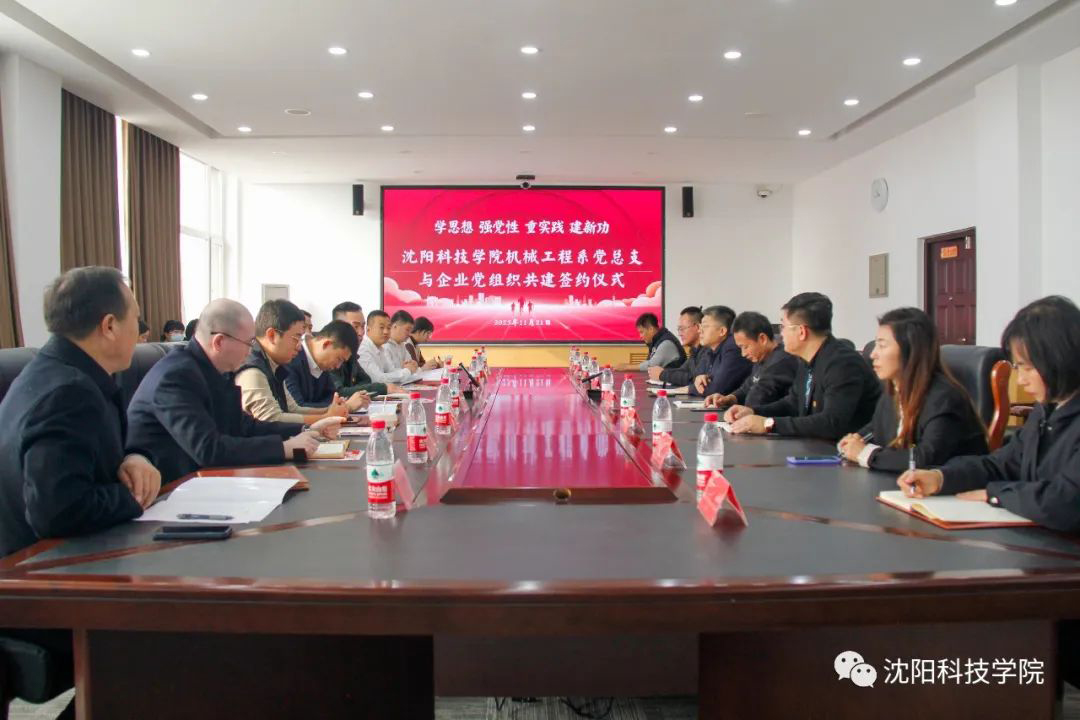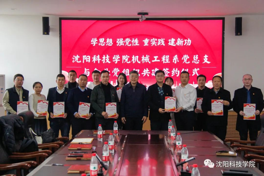 为进一步推动学习贯彻习近平新时代中国特色社会主义思想主题教育走深走实,紧紧围绕“学思想、强党性、重实践、建新功”的总要求。在不断探索创新党建工作新途径和新方式的前提下,全面开展基层党组织结对共建活动,以党建共建的方式推动干事创业取得实效。11月21日,机械工程系党总支与沈阳国际软件园辽宁移动浑南分公司、中远海运航空货运有限公司、沈阳风驰软件股份有限公司、沈阳四通自动化有限公司、沈阳博之众科技有限公司、软件园社区等11家党组织在第二教学楼505会议室举行党建共建签约仪式。校党委书记耿乃国,沈阳国际软件园综合党委副书记刘永军出席签约仪式并讲话,签约仪式由机械工程系党总支书记徐鹏主持。