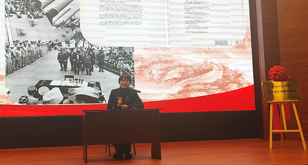 随后“九•一八”历史博物馆社教部副主任、副研究馆员季宁老师以“回望东北抗战 传承红色基因”为题为全体师生作了一场生动、深刻的报告。季宁老师围绕九一八事变发展的历史过程,详细讲述了在中国共产党领导下,杨靖宇、罗登贤、赵尚志、赵一曼等一大批革命烈士英勇顽强抵抗日本侵略者的故事。通过季宁老师的讲解,在场的学生深刻认识到正是因为拥有这些不屈不挠的革命烈士,才使抗日救国的旗帜能够在东北战场高高飘扬。