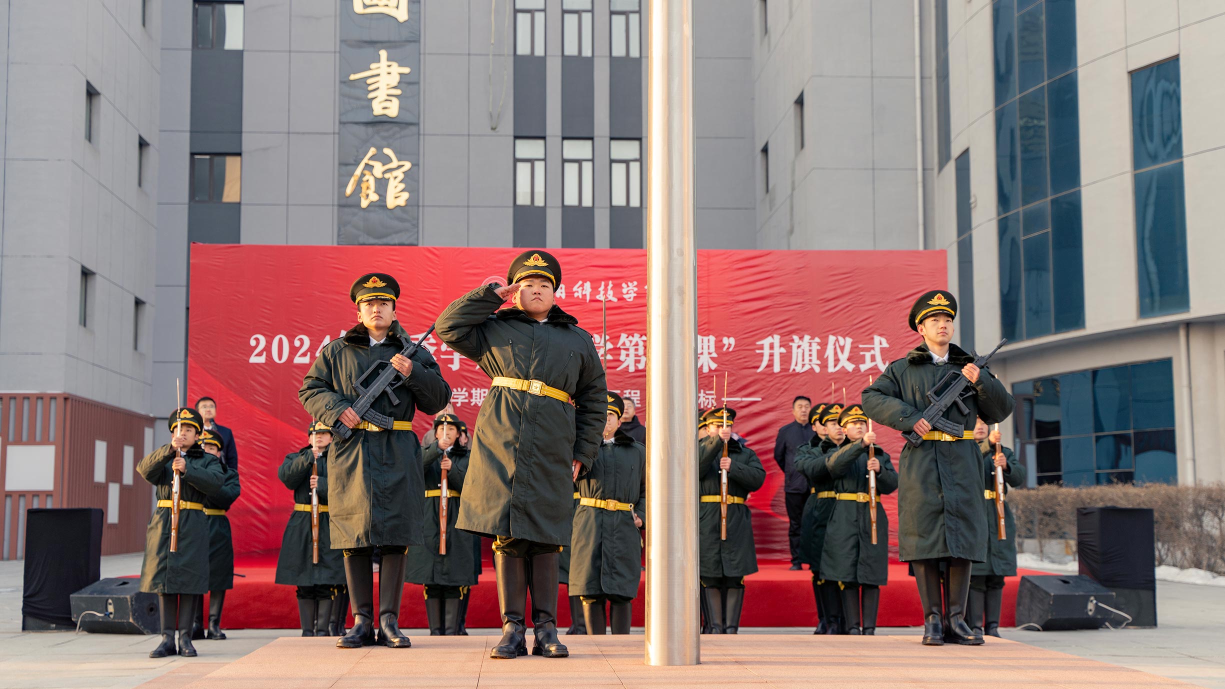 升旗仪式上,校党委书记耿乃国为与会师生讲授“开学第一课”,寄语广大同学一要坚定理想信念,厚植家国情怀,融小我于大我;二要笃行不怠、不懈奋斗,深耕专业本领;三要努力探索、求实创新,坚持守正创新的优良传统,以奋斗之姿努力奔跑新学期。