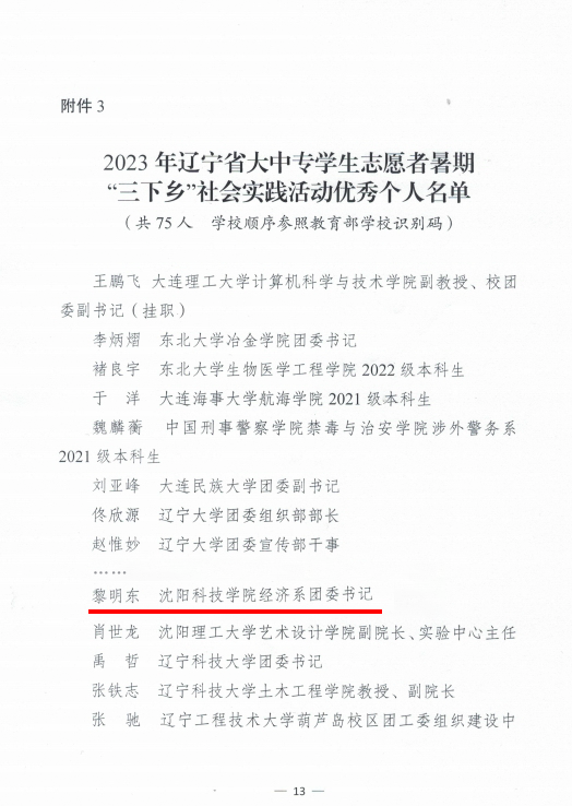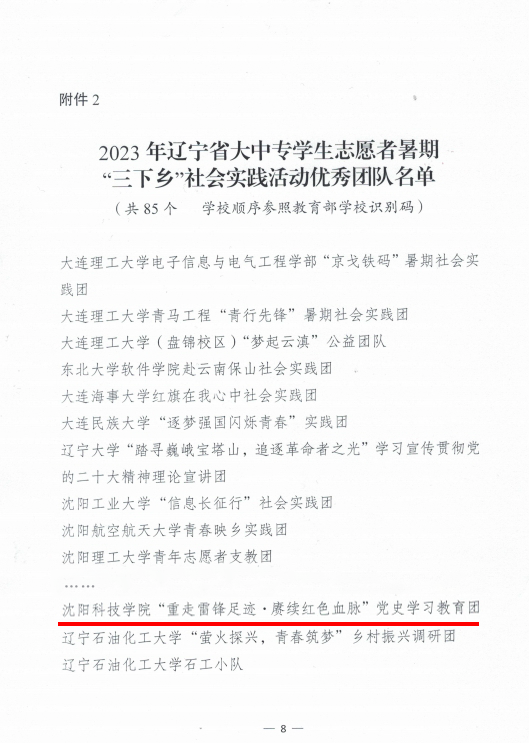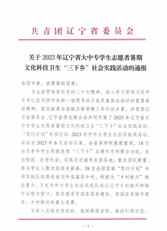 我校在2023年辽宁省大中专学生志愿者暑期文化科技卫生“三下乡”社会实践活动中喜获佳绩