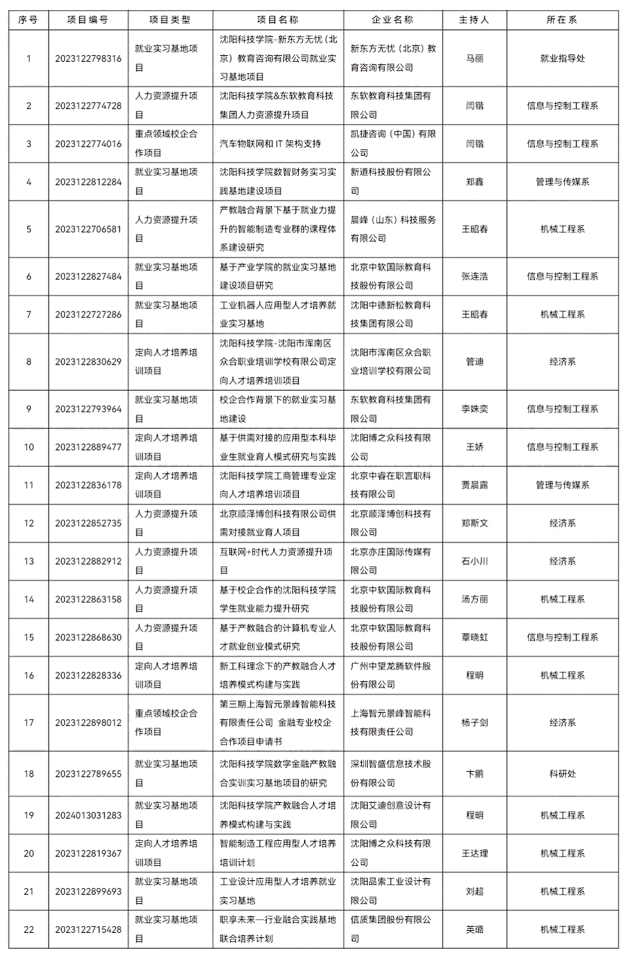 近日,教育部高校学生司(高校毕业生就业服务司)发布《关于公布第三期供需对接就业育人项目立项名单的通知》(教就业司函〔2024〕23号),我校首次获批22项教育部供需对接就业育人项目,其中就业实习基地项目9项,人力资源提升项目6项,定向人才培养培训项目5项,重点领域校企合作项目2项。