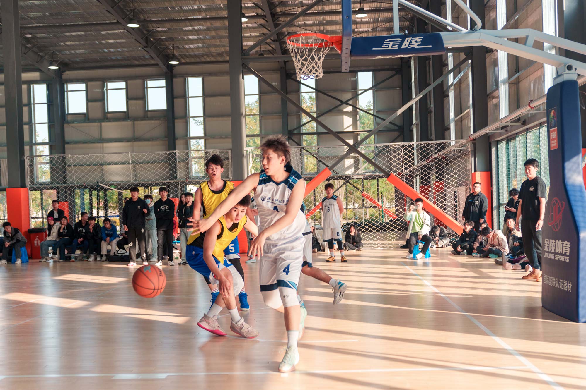 为庆祝新中国成立75周年,弘扬中华体育精神,丰富学生课余生活,展现新时代青年朝气蓬勃的精神风貌,近日,我校第三届“迎新杯”校园男子篮球赛在南校区篮球场震撼开幕。党委副书记、副校长高洪震莅临比赛现场,为篮球赛开球。我校7支队伍,共49名篮球健将参赛,历时8天的激烈角逐,参赛队员们迎“篮”而上,奋力拼搏,为观众呈现了一场场视觉与激情的双重盛宴。