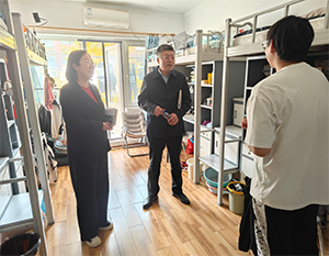 座谈会结束后,耿乃国深入学生寝室,与学生亲切交流,他仔细观察学生的住宿环境,详细询问了学生的吃住和学习规划等情况,同时嘱咐同学们要融洽相处,互相帮助,营造良好的宿舍氛围。