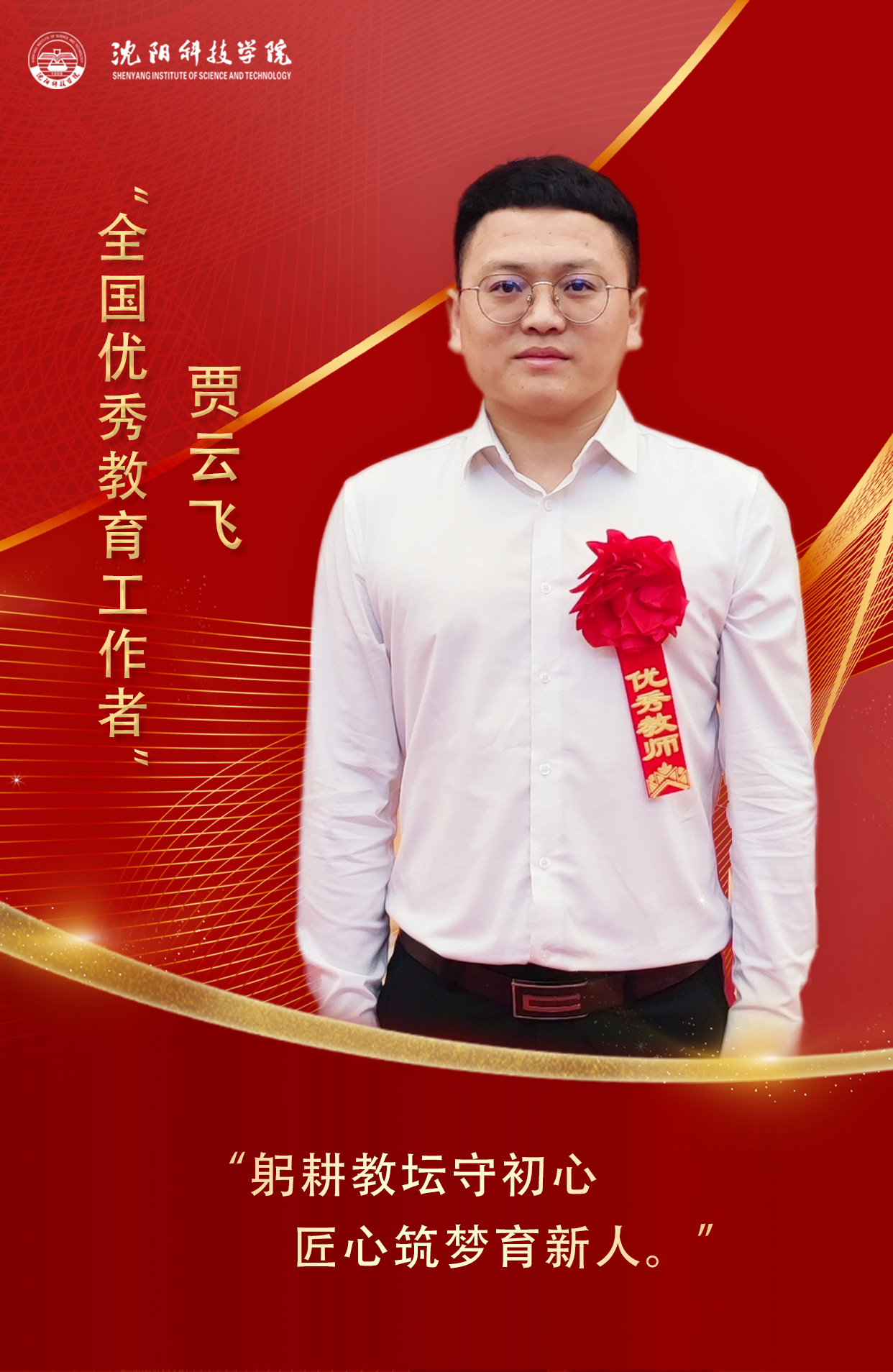 我校辅导员贾云飞获评2024年“全国优秀教育工作者”