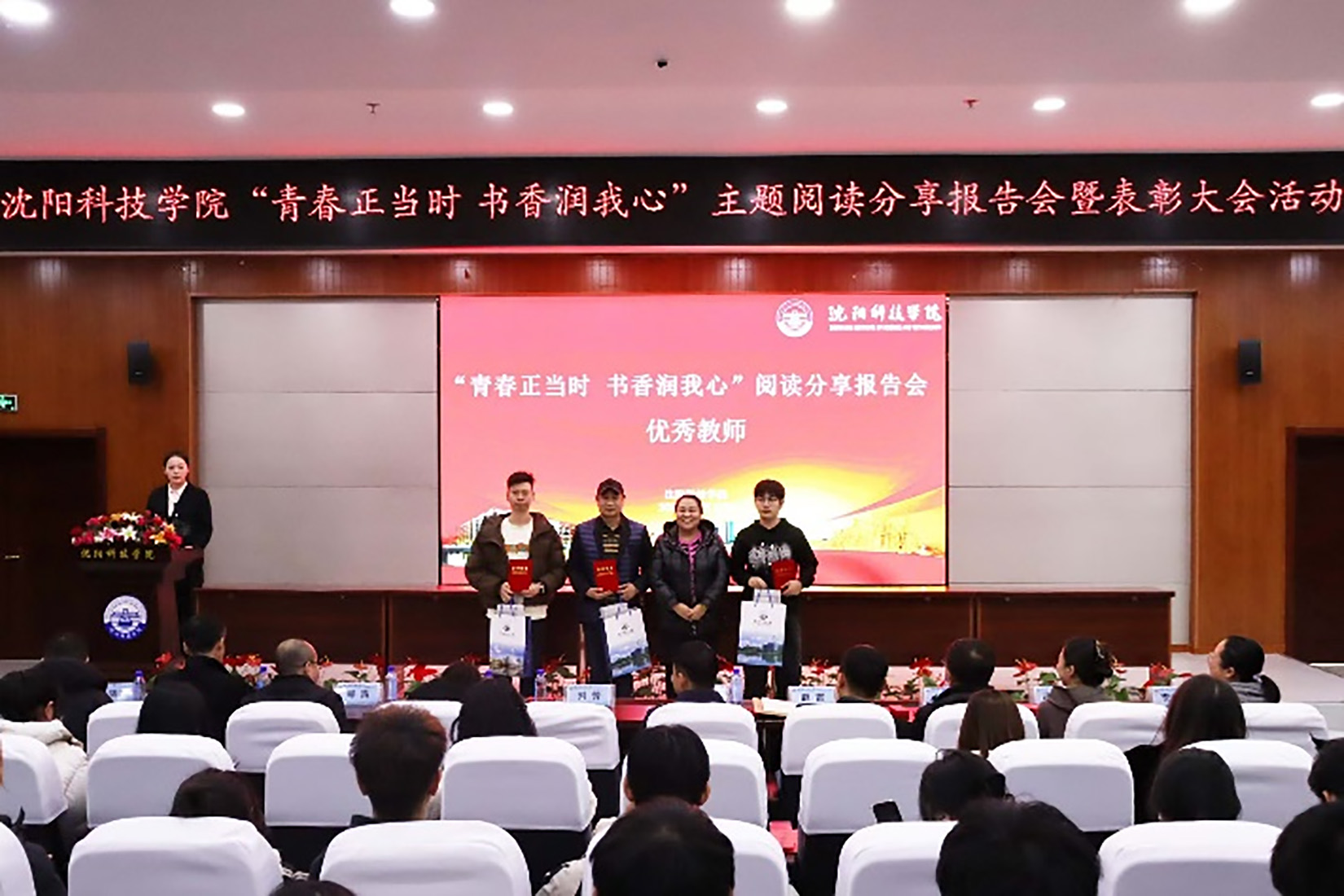 为深入学习贯彻习近平总书记关于全民阅读工作的重要指示精神,进一步激发全校师生的阅读兴趣,鼓励全校师生广泛阅读,在全校形成爱读书、读好书、善读书的浓厚氛围。12月18日,由学生处、校团委、图书馆主办,马克思主义学院、信息与控制工程系承办的“青春正当时 书香润我心”阅读分享报告会暨表彰活动在图书馆报告厅举行。