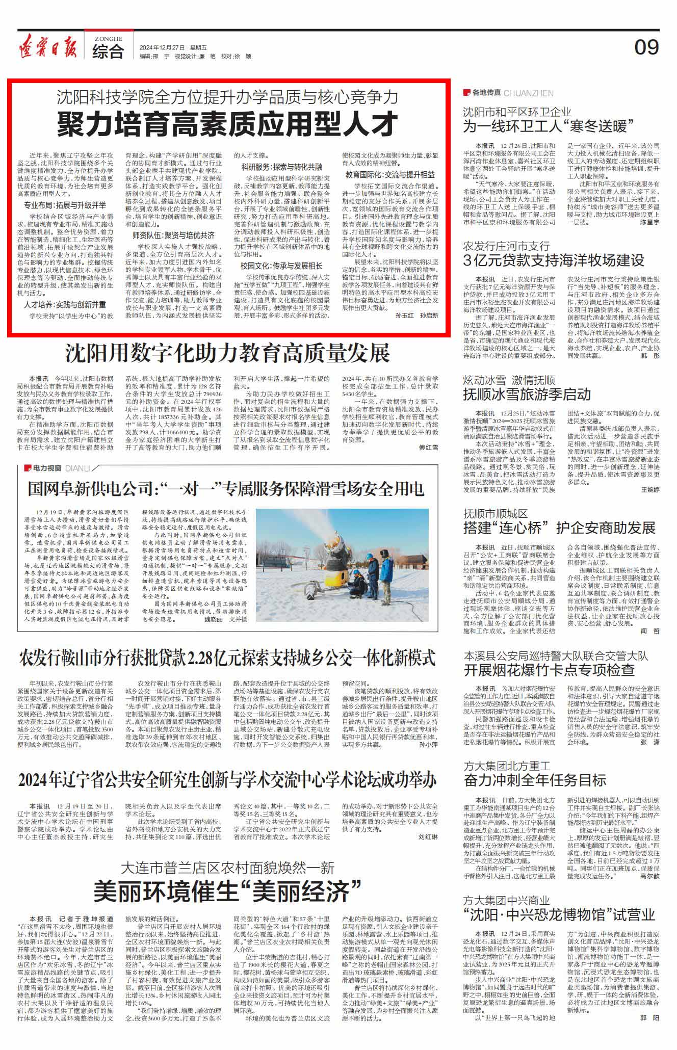 12月27日,《辽宁日报》第九版以《九州在线注册全方位提升办学品质与核心竞争力  聚力培育高素质应用型人才》为题,对我校聚焦未来教育事业发展规划,锚定建设优质强校奋斗目标,为社会培育更多高素质应用型人才进行报道。