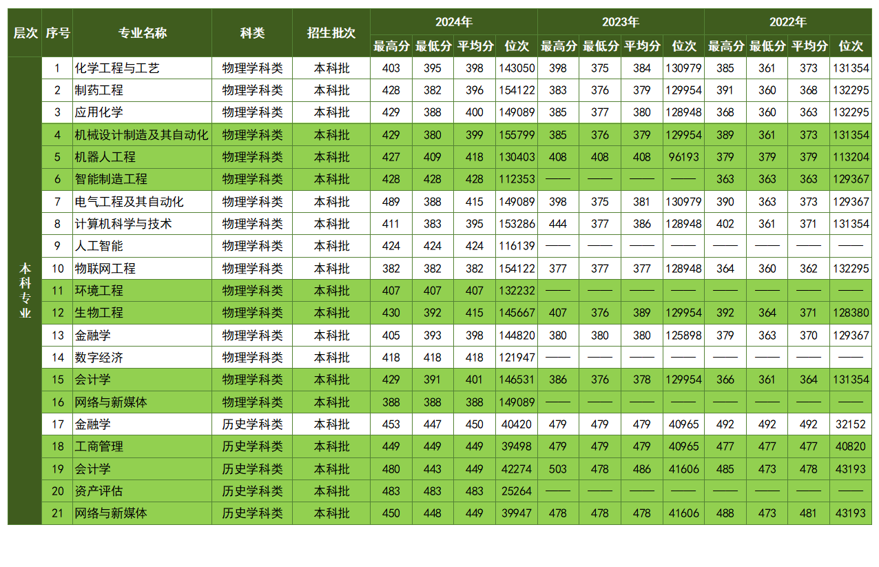 本科专业近三年贵州省录取分数线