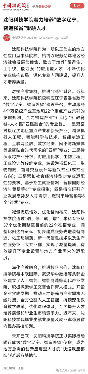 《中国新闻网》报道我校:着力培养“数字辽宁、智造强省”紧缺人才