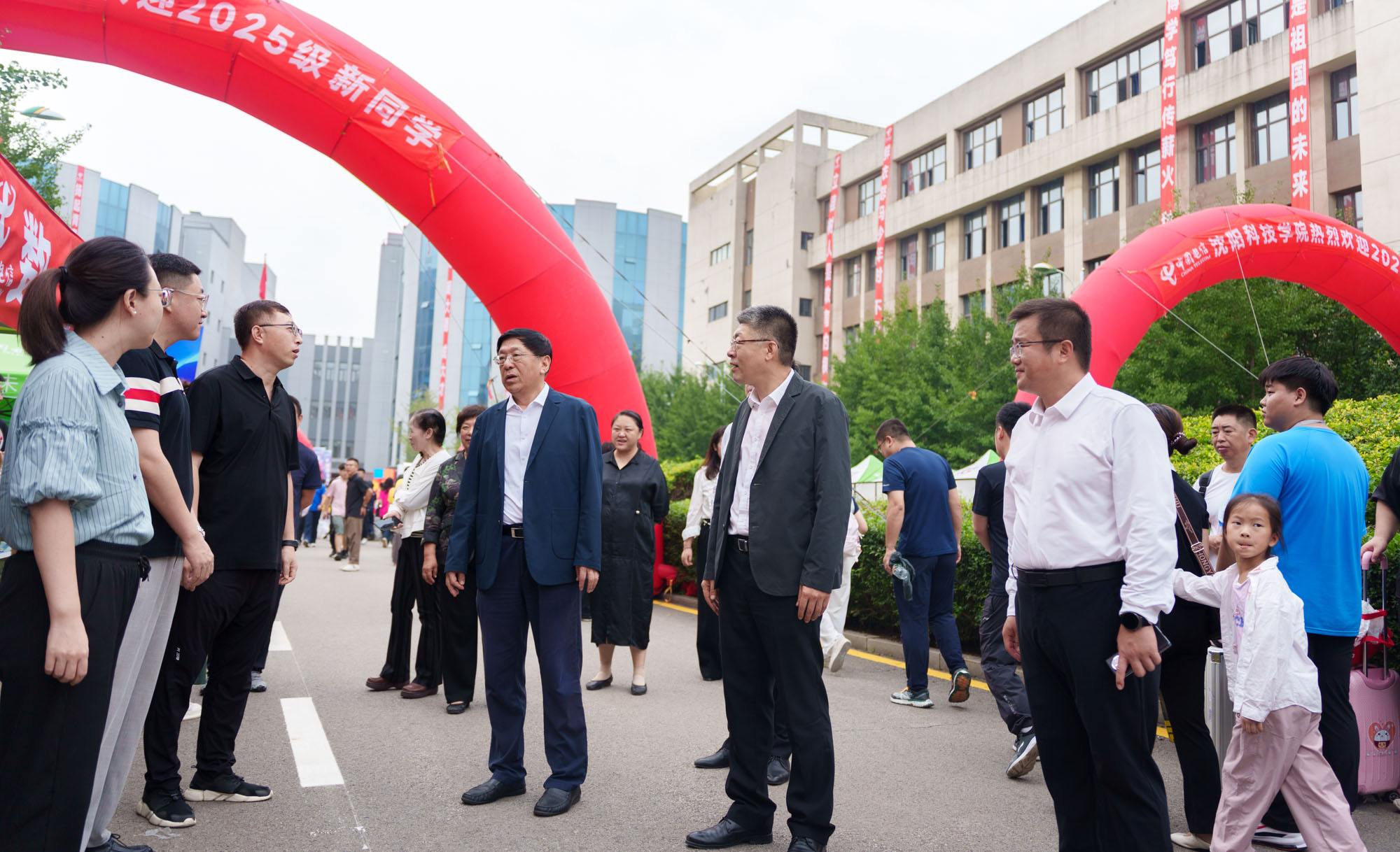 校领导深入迎新现场与前来报到的2025级新生亲切交谈